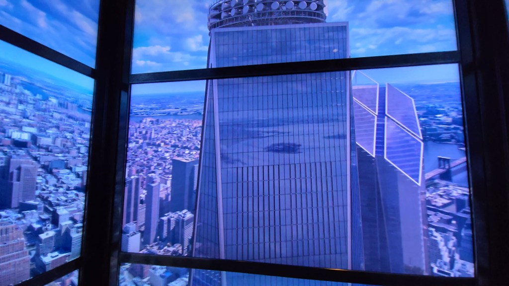 But it’s not just a fast elevator — it’s an immersive time-travel ride. LED screens on all sides show New York City’s evolution from the 1500s to today, and it’s such a cool way to start your visit.